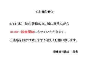 << 5/14(水)の診療は10:00からとなります