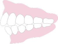(出っ歯)上の前歯が前に出ている歯並びです。見た目だけでなく、口が閉じにくくなることから虫歯リスクが高まる原因にもなります。 -